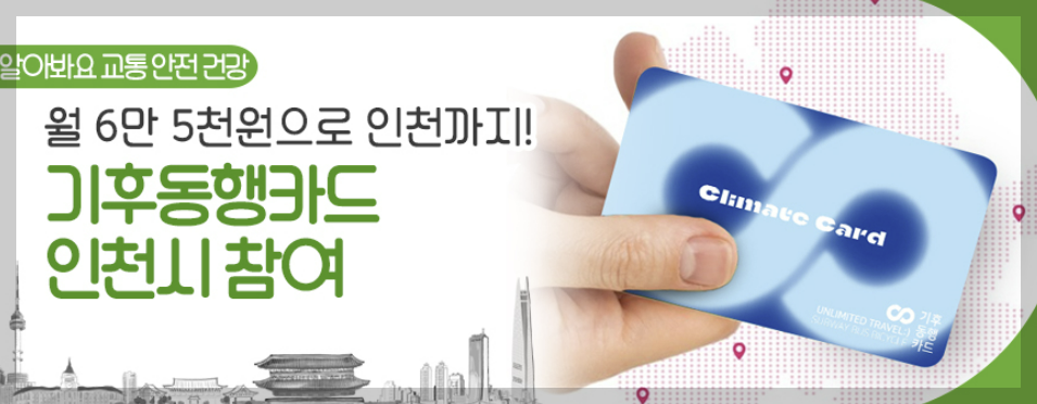 기후동행카드는 서울시에서 내년부터 시범 운영하는 월 65,000원의 무제한 통합 교통 패스입니다. 내년 상반기에 시범 운영을 진행할 예정이고 하반기에 정식으로 도입될 예정입니다. 또한 현재 서울시 뿐만 아니라 인천시도 같이 진행하고자 11월 17일 서울-인천 업무협약을 체결하였습니다. 이로 인해 서울, 인천 지역에서 사용이 가능할 예정입니다.