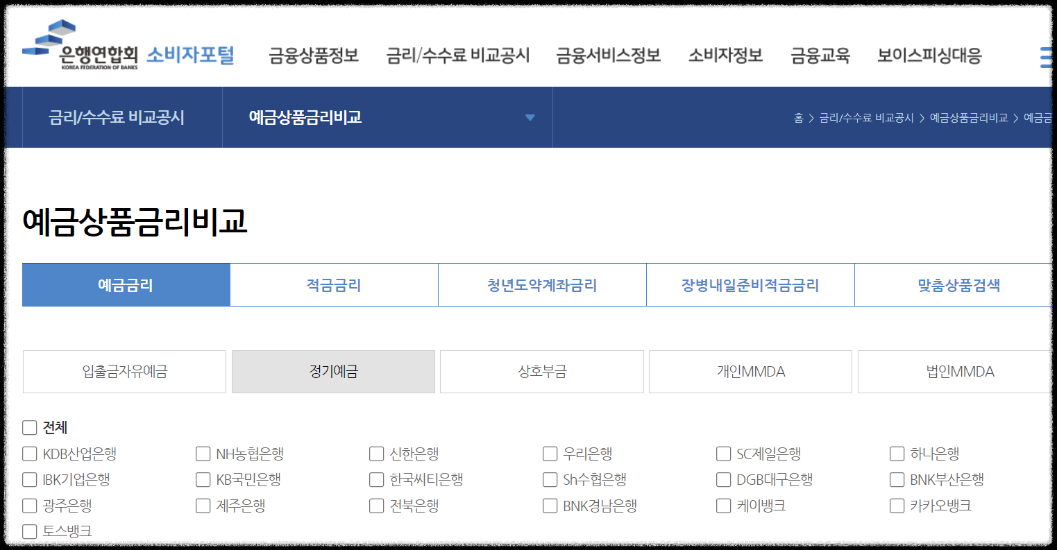✅ 새마을금고 이외에 예금금리 높은 다른 은행을 확인하는 방법이 있습니다. 바로 은행연합회 소비자포털 사이트를 이용하는 것입니다. 이 사이트를 통해 적금금리, 청년도약계좌금리 등을 손쉽게 확인할 수 있습니다.