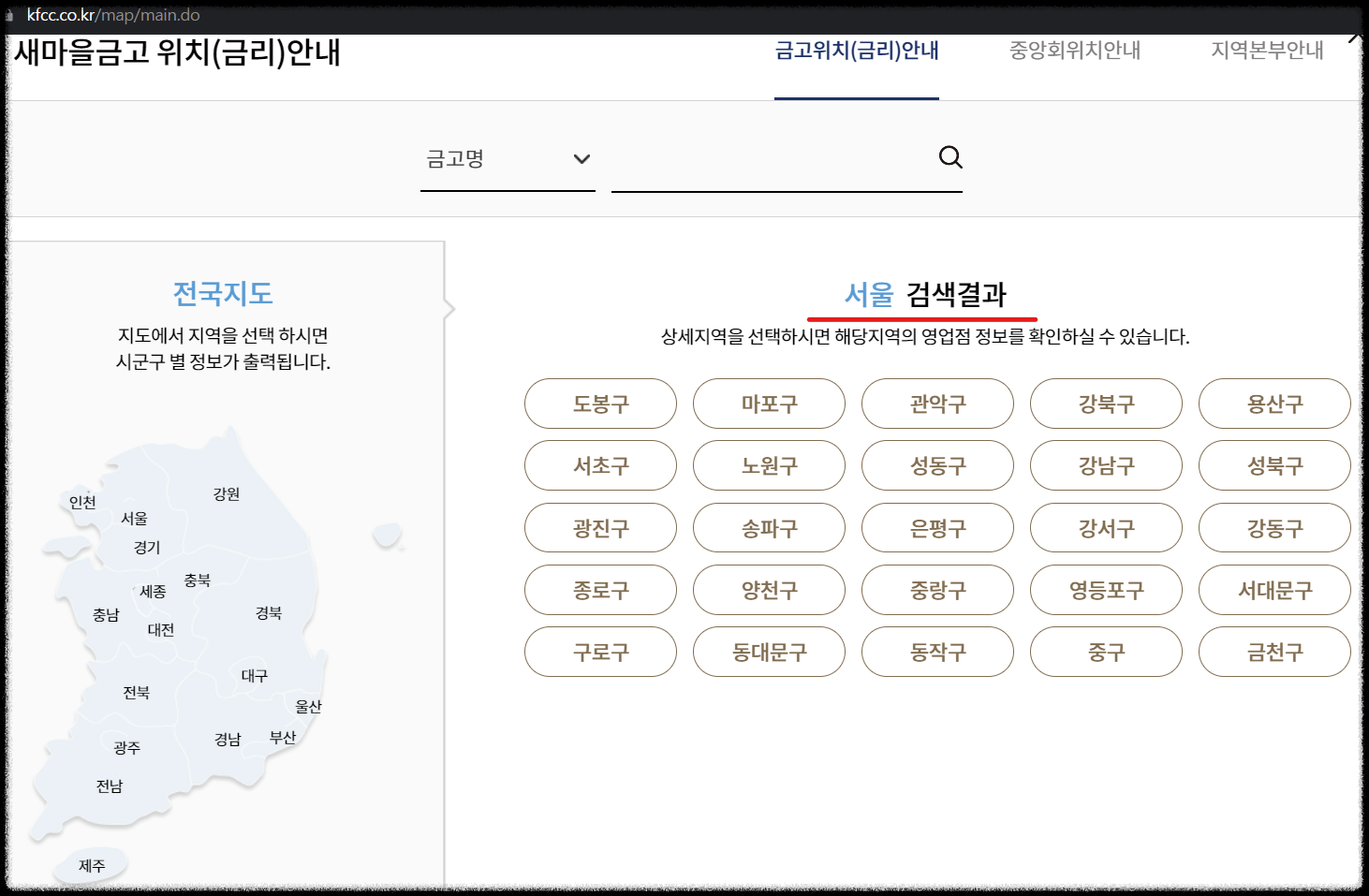 1. 새마을금고의 예금금리 높은 곳 찾는 방법?